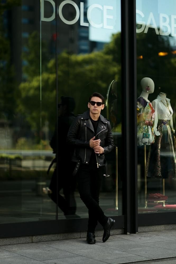 ウエストベルトとフラップポケットが付いたUSスタイルのダブルライダースデザインに細身のスリムなサイジングを採用しています。