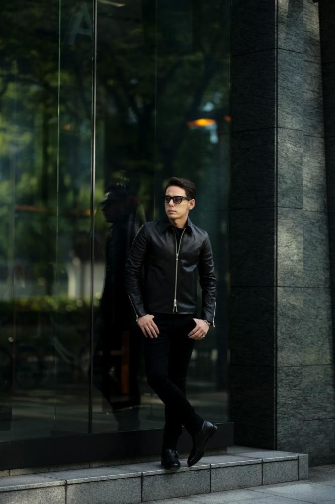 コチラのモデル「GUIDI CALF SINGLE RIDERS No.T-231」はイタリア老舗タンナーのブランド「GUIDI」社のカーフレザーを使用したシングルライダースジャケット。