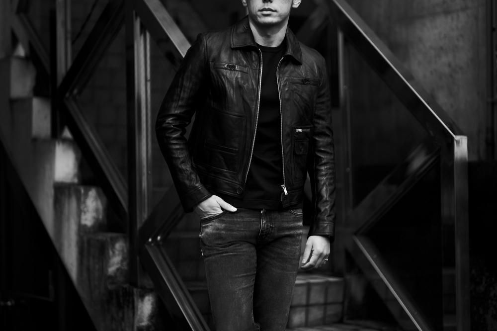 SAINT LAURENT (サンローラン) ASYMMETRY JACKET (アシンメトリージャケット) VINTAGE CRINKLED LEATHER (ヴィンテージクリンクルレザー) ラムレザー ジャケット Made in italy (イタリア製) / Detail