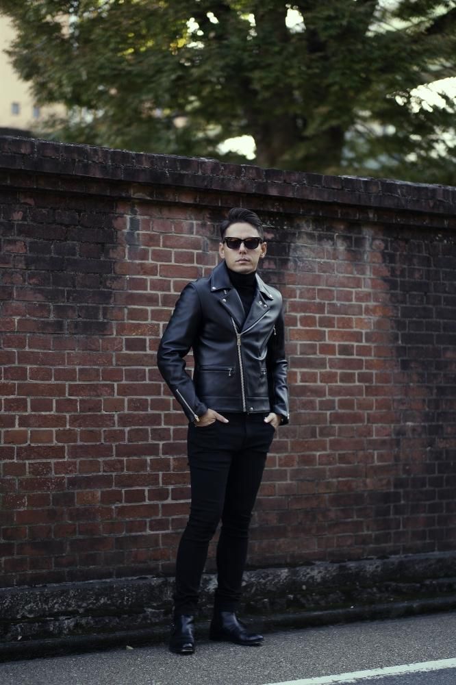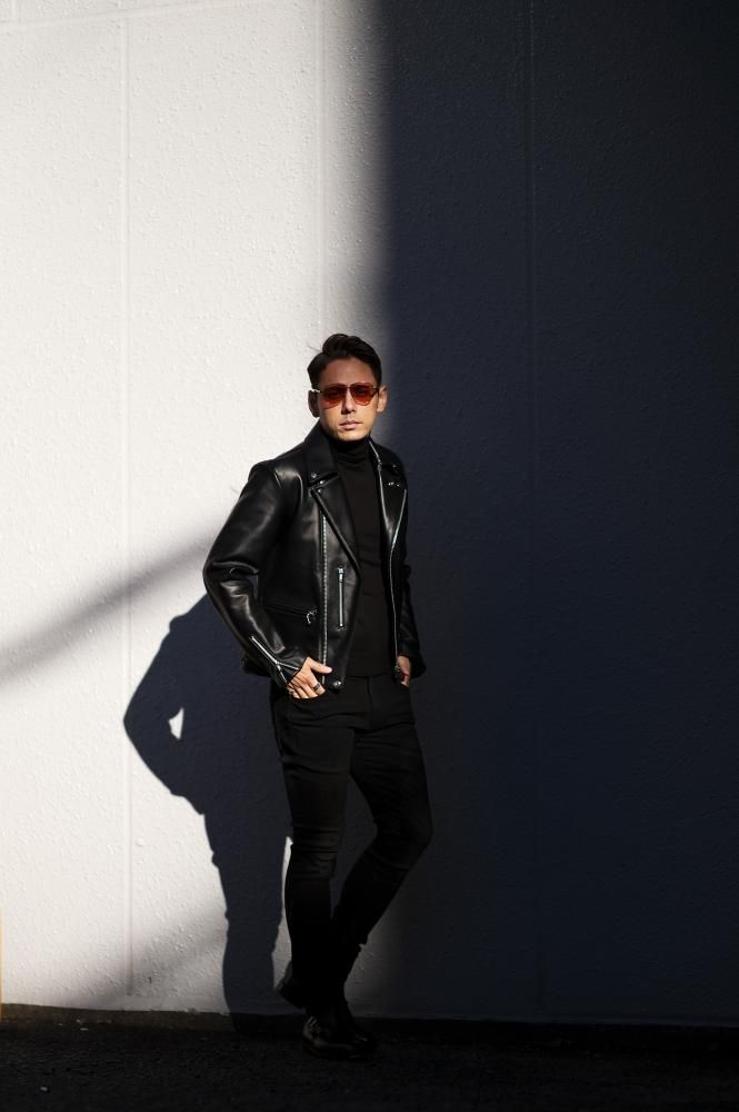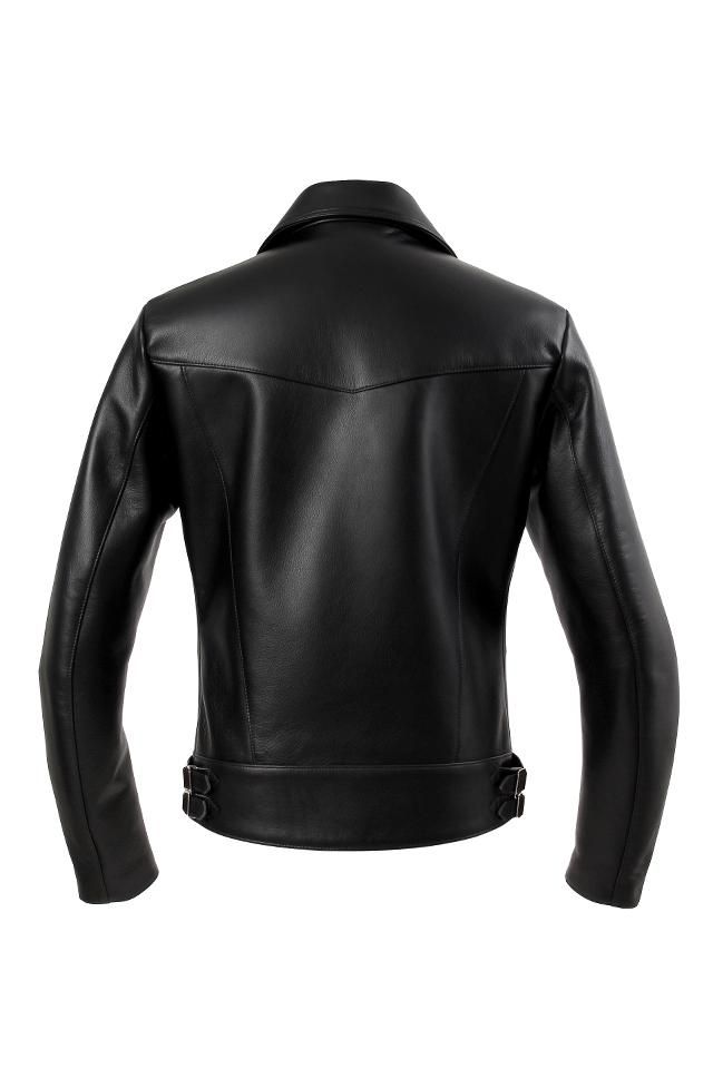 無駄のないクラシカルなダブルブレストのモーターサイクルジャケット。