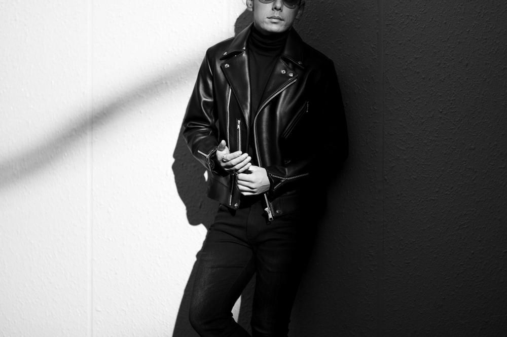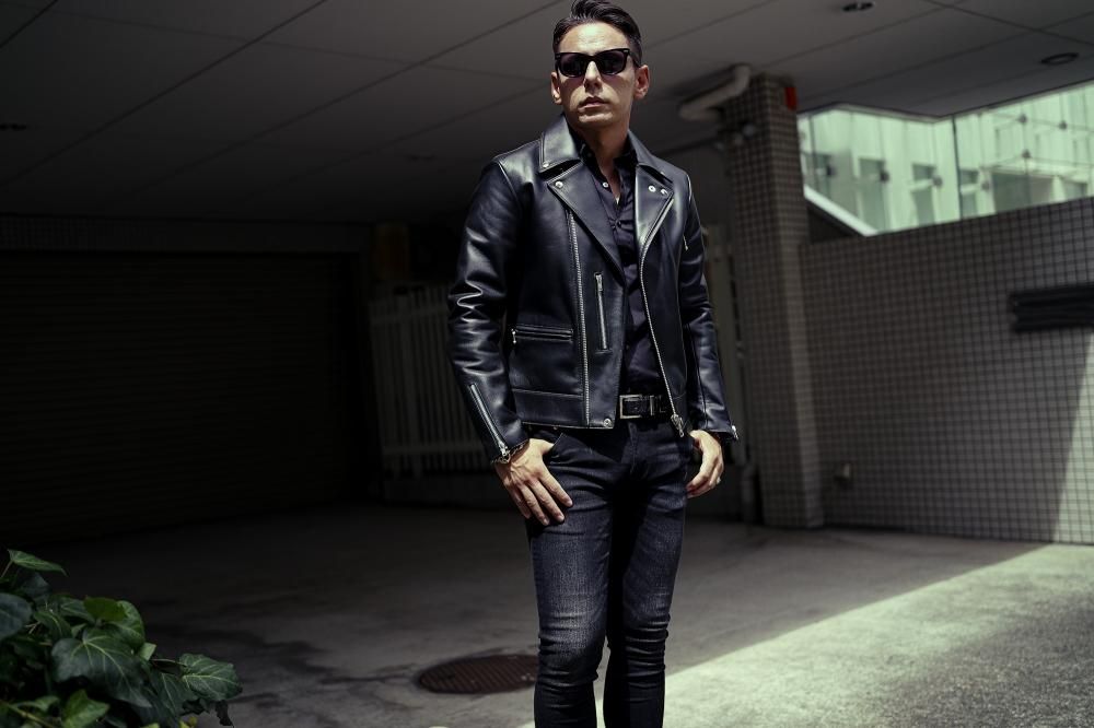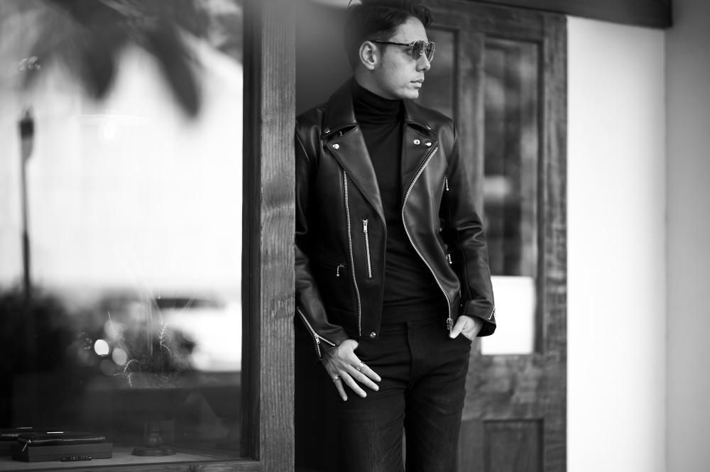 テーラーリングの源流である英国のエッセンスをレザーアイテムに組み込むことで、立体的でシャープなカッティングにより体を美しく包み込みます。