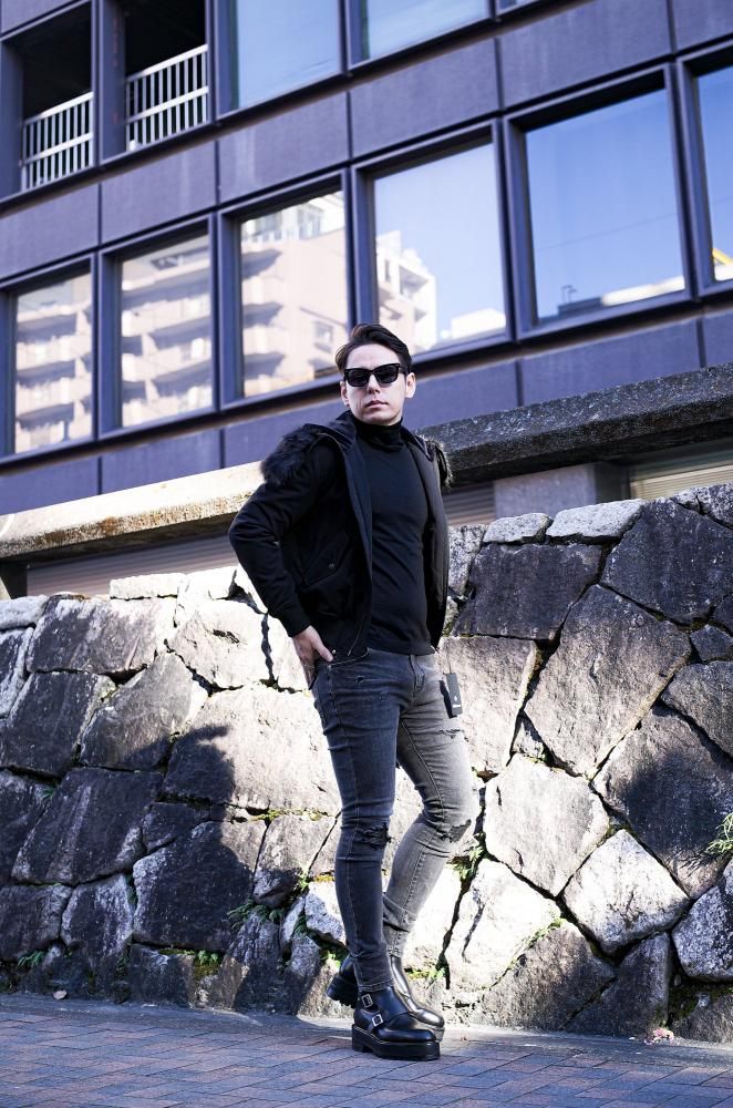 フロントにジップクロージャー、フラップ付きの脇ポケット2つ、袖にジップポケット1つ。