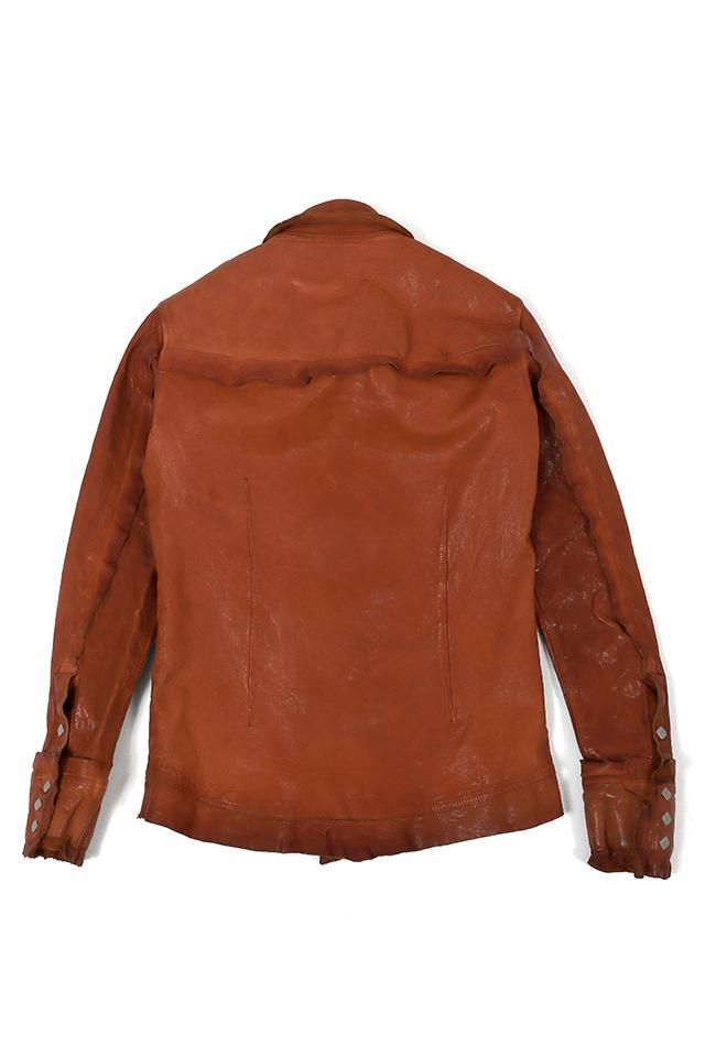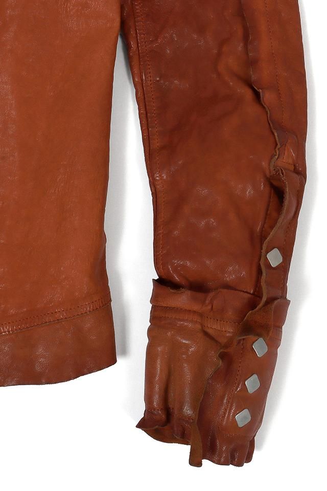 全て断ち切りで処理される野趣に溢れ、レザーが持つナチュラルエッジを落とし込んだ一着一着見た目の異なる一点物になっています。