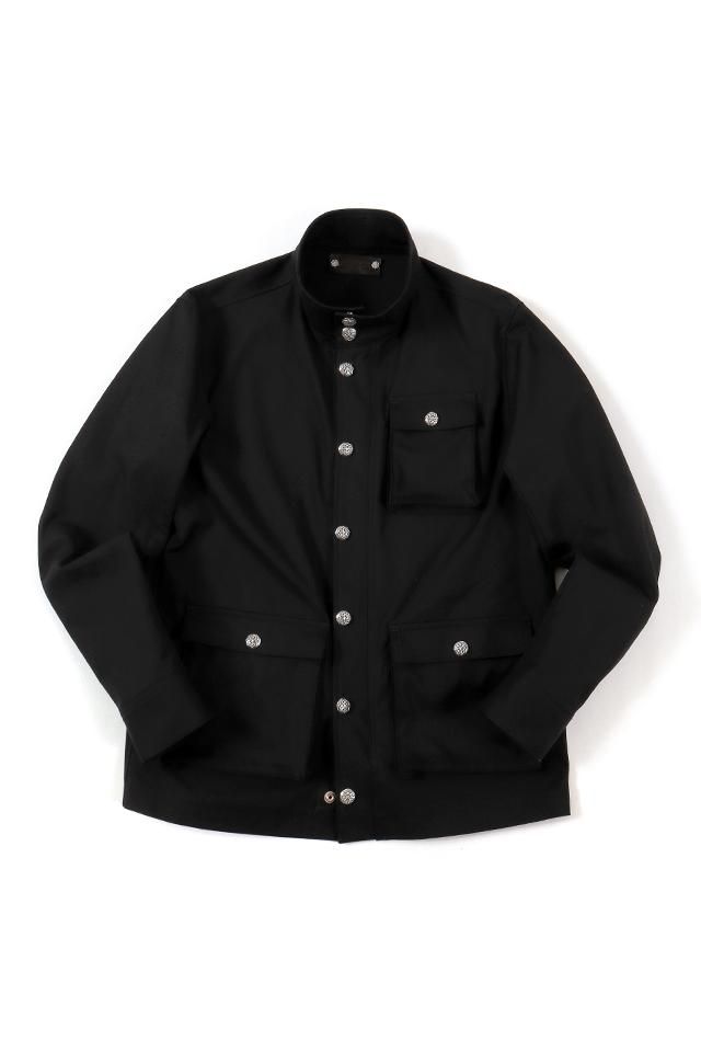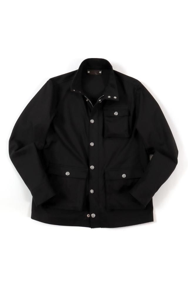 比翼仕立てを留めるフロント、胸ポケット、両サイドのポケットにそれぞれ、トライバル柄のシルバー925製スナップシルバーボタンが全部で11個も装着された超贅沢仕様。
