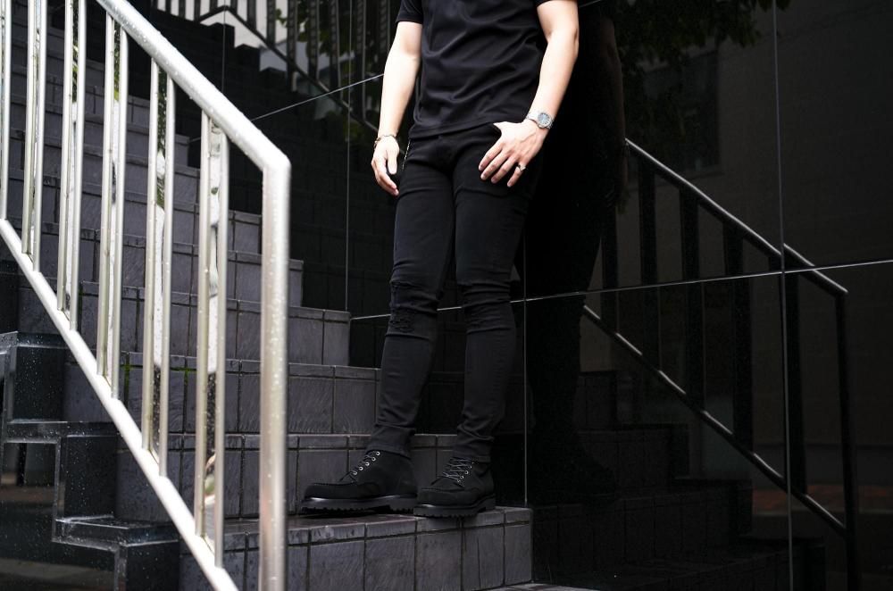 スキニータイプのタイトシルエットに、股上も浅く極限まで削ぎ落とされたシンプルでロックテイストなデザインが特徴です。