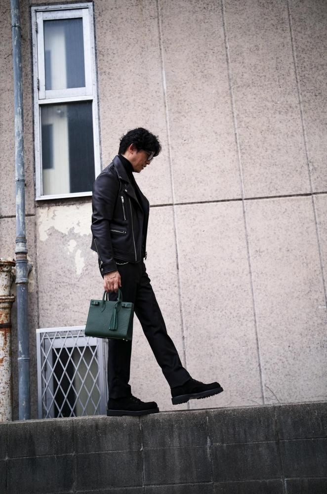 素材は柔らかなシュリンクレザーを使用し、シンプルでありながらも上品な佇まいのフルレザーデザイン。