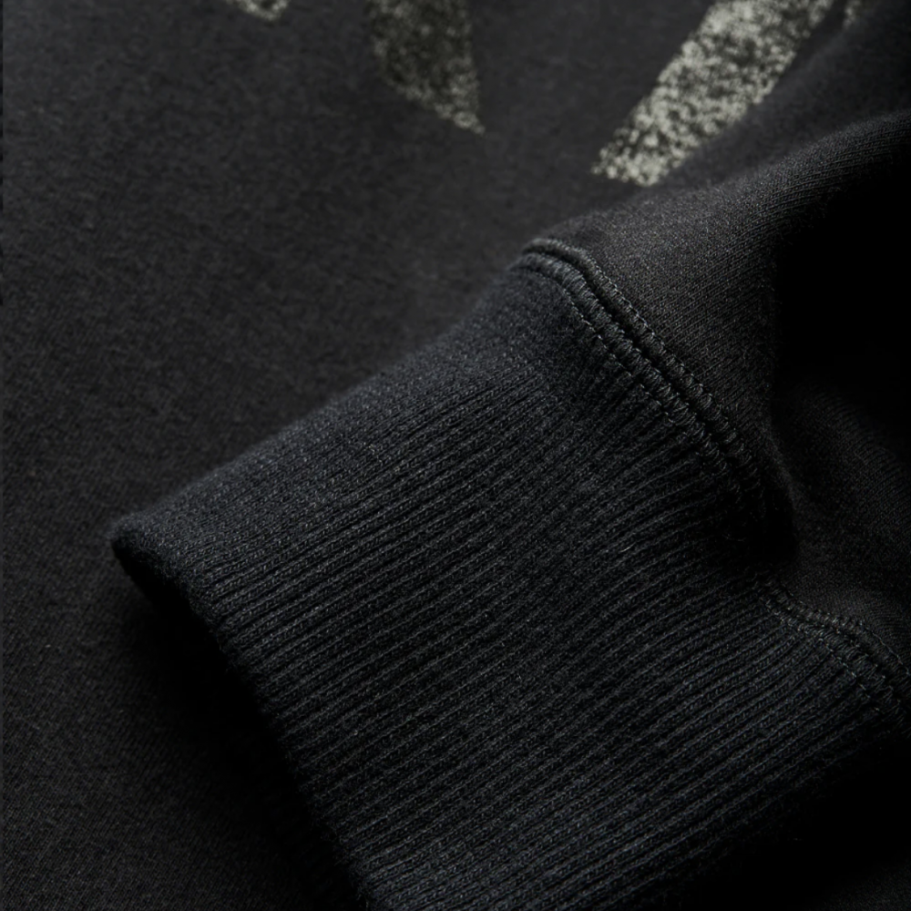 本来杢グレーの商品ラインナップですが、今回黒のみで黒地に黒でプリントを施し、上質なミリタリースエットジャージとして、ZIP パーカー、R-NECK スエット、ジャージパンツの3 点でリリース致します。