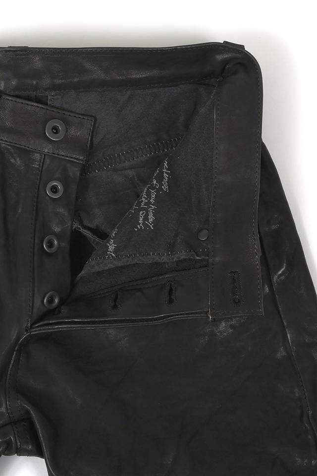 ISAMU KATAYAMA BACKLASH (イサムカタヤマ バックラッシュ) ITALY SHOULDER “GARMENT-DYED” PANTS No.1254-08 (イタリー ショルダー ガーメントダイ パンツ) レザー パンツ MADE IN JAPAN (日本製) / Detail