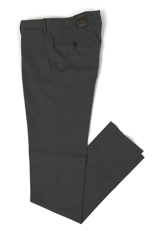 コチラのモデル「N35型」は、INCOTEX定番モデルのスリムテーパードノープリーツパンツ。 裾幅が細くテーパードのかかったインコテックスの基本シルエット「30型」をベースに、フロント持ち出しのボタンがぶち抜き仕様、バックポケット左右にボタンが付いた仕様です。 日本人の体型にフィットするよう作られ、自然で柔らかなラインとノープリーツの飾りのないベーシックなデザイン。 ヒップラインからワタリにかけて少しゆとりのある計算されたシルエットに設定。 素材には秋冬シーズンの機能素材テクノフランネルを採用。 ホームウォッシャブル、撥水性、ストレッチ、シワになりづらい、という4つの機能を持ち、風合いはフランネルタッチではあるものの、そこまで季節感が強調されておらずロングシーズン着用可能な生地になります。